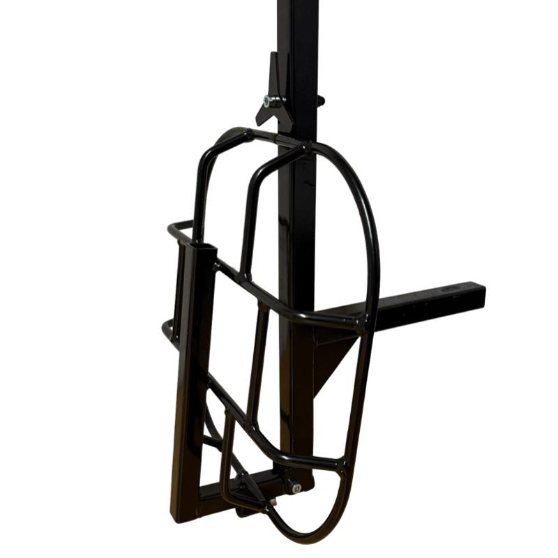 ATLAS - Bag stand 34" inclusing canvas strap and buckle. Finished in black gloss powder coating. Uses folding base fo easy storage..