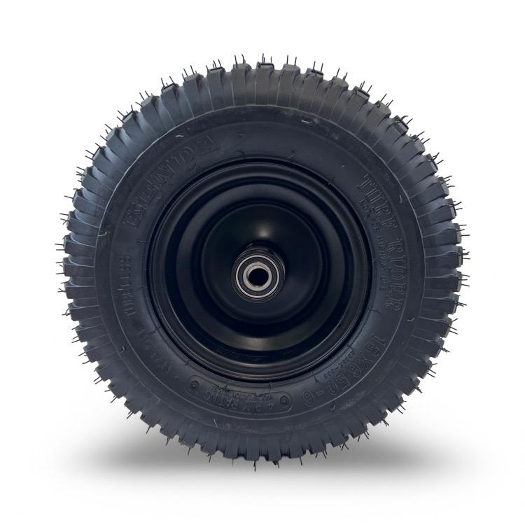 Complete front wheel and tubless tyre. Includes wheel bearings.